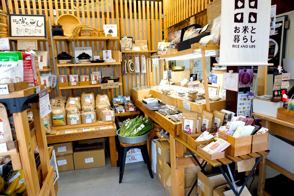 お店の中には、店名にもある「お米」を中心に、雑穀や調味料、有機野菜、テイクアウト商品など、盛りだくさんに並んでいます。